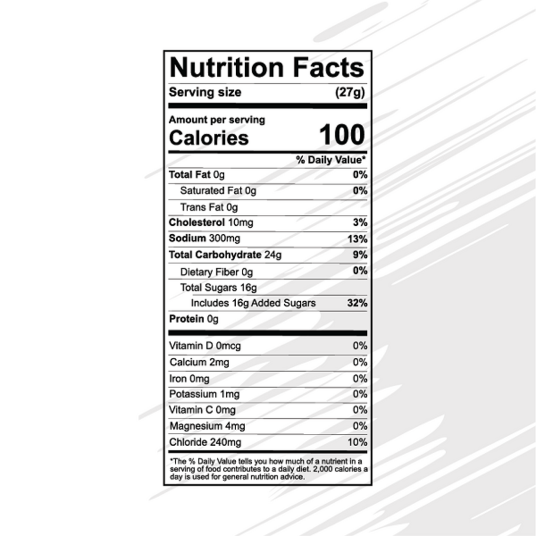 Fiecare porție include 300mg sodiu într-un raport 1:1 de sare de mare și citrat de sodiu. Utilizarea citratului de sodiu împreună cu sarea de mare permite intestinului să tolereze un consum mai mare de sodiu în timpul antrenamentului, oferind hidratare optimă și echilibru electrolitic fără tulburări digestive. Sodiul este principalul electrolit responsabil pentru echilibrul fluidelor, contracția musculaturii și comunicarea celulară și este electrolitul care se pierde în cele mai mari și mai variabile cantități în timpul exercițiilor și sporturilor de anduranță excesive.