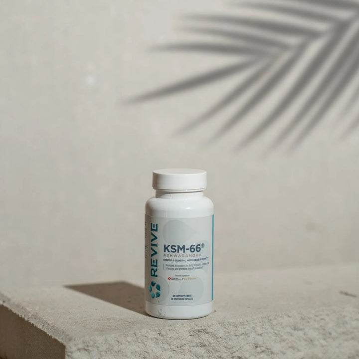 Ashwagandha de la REVIVE este formulat clinic cu 500 mg de KSM-66 Ashwagandha, care este cea mai completă și mai studiată versiune a tuturor extractelor majore „numai rădăcină” de pe piață astăzi. Ca atare, Ashwagandha susține răspunsuri sănătoase la factorii declanșatori de stres zilnic, îmbunătățirea bunăstării generale, reducerea anxietății, forța musculară sănătoasă și recuperarea musculară îmbunătățită. Atunci când este asociat cu Calm by REVIVE, creează un sistem complet de gestionare a stării de spirit și a stresului, pentru a oferi liniște sufletească și pentru a combate pe deplin nivelurile anormale de cortizol, stresul și anxietatea!